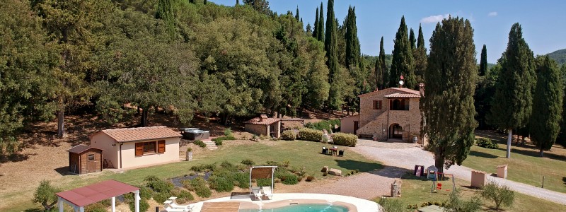 Die Eigentümer haben viel in die Villa investiert. Die Wege beim Haus und die gesamte Poollandschaft sowie der Speise- und Barbecuebereich im Freien sind schön angelegt und ausgeleuchtet und bieten damit auch am Abend Toskana-Flair vom Feinsten. Die hohen alten Zypressen hinter dem Haus haben eine ganz eigene zauberhafte Atmosphäre und man sollte sie in stillen Momenten nicht verpassen.
