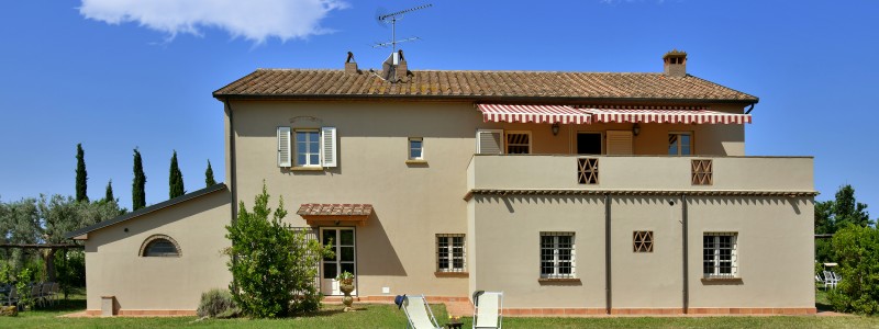 Villa Montaleo ist ein grosszügiges Feriendomizil, nur knapp 5 Km von der Küste entfernt bei Cecina. Die Villa liegt nur etwa 600 Meter Luftlinie von der Ausfahrt der Superstrada Cecina-Zentrum entfernt und bietet damit eine ausgezeichnete Anbindung. Leichte Geräusche von der Superstrada können bei der Villa zu hören sein. Für sehr geräuschempfindliche Gemüter sei das hier erwähnt, wobei die insgesamt ruhige Lage auf dem Land in so guter Nähe zur Küste eine wunderbare Atmosphäre schafft. Das zur Villa gehörende Grundstück ist sehr gross. Auf dem umliegenden Land wird eigenes Olivenöl produziert und biologischer Ackerbau betrieben.