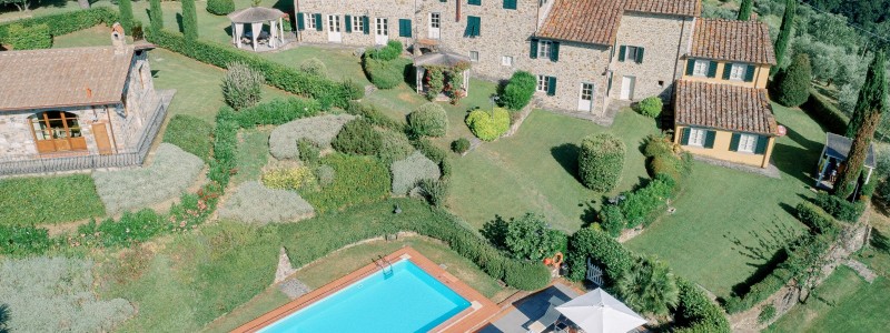Etwa 14 km von Lucca entfernt liegt dieses ausgesprochen schöne Anwesen. Es besteht aus insgesamt vier sehr großen Apartments, die eigentlich schon als Haus bezeichnet werden können, welche miteinander verbunden, den großen Gebäudekomplex mit wunderbarer Lage mit Blick ins Tal bilden. Diese einzelnen „Häuser“ können einzeln oder auch für größere Gruppen gemeinsam angemietet werden und bieten dann für mehr als 30 Personen ausreichend Platz, um in den Ferien oder auch für Feierlichkeiten in der Toskana zusammen zu sein.